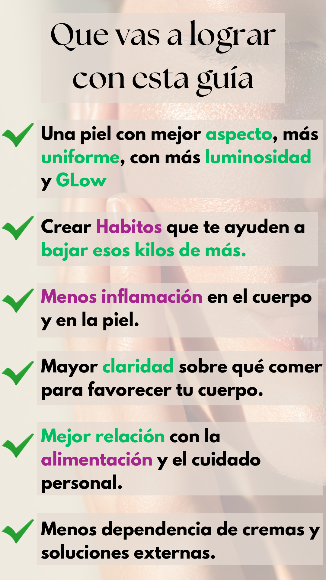 No. Esta guía no busca reemplazar nada, sino complementar tu cuidado desde un enfoque más integral. Muchas veces la piel refleja cómo nos cuidamos día a día, y pequeños cambios sostenidos pueden generar mejoras visibles.
